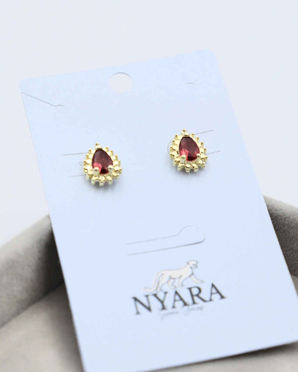 Brinco gota banhado a ouro, cravejado com uma zircônia vermelha, perfeito para deixar seu look mais romântico e moderno!
